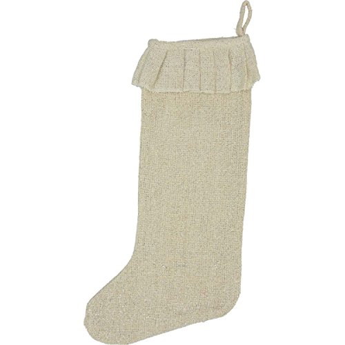 Christmas Shimmer Cream Burlap Creme Stocking 11x20 inches - Holiday Decoration for Home or Gift Bag Giving