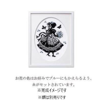 | 可憐な少女のシルエットと小花が可愛らしいキット。お花の色はお好みでブルーにもかえられるよう、糸がセットせれています。技法はクロスステッチ。額(W-53)は別売り。技術レベルは初級~中級者向。 |