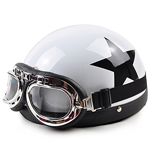 -. Title : Kangkang@ [WHITE Star]Cool Adult Scooter/Chopper/Motorcycle Helmet with Goggles,One size