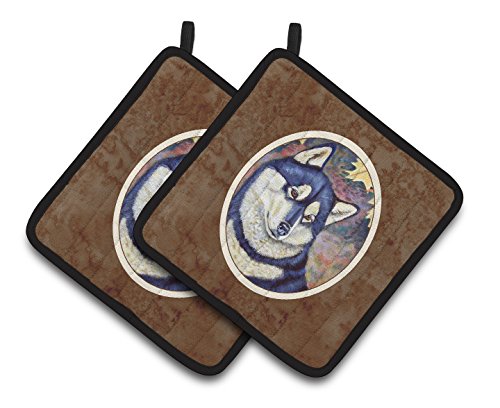 Caroline's Treasures Fall Leaves Siberian Husky Pair of Pot Holders 7173PTHD, 7.5HX7.5W, Multicolor