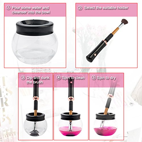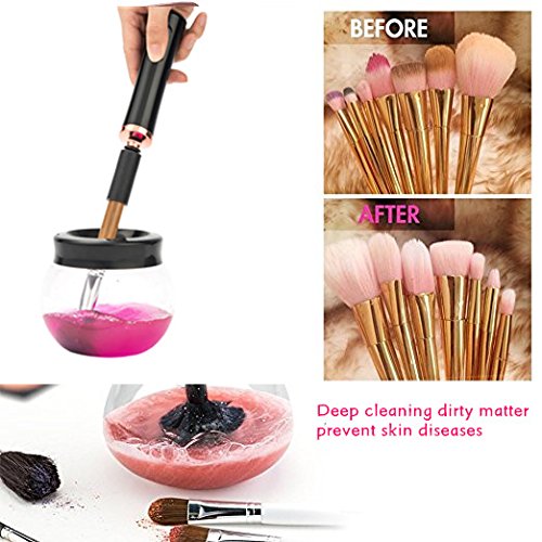 - SUPER-POWER MOTOR, driven by 2 AAA batteries(NOT INCLUDED), this powerful makeup brush cleaner can easily remove eye shadow or blush color from makeup brushes and dry brushes in seconds, no more messy basins or waiting hours for brushes to dry, making your brushes stay clean and healthy to last longer than ever before