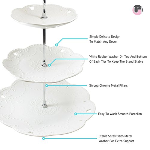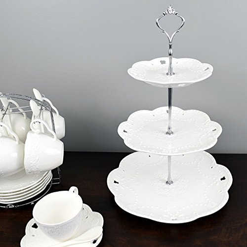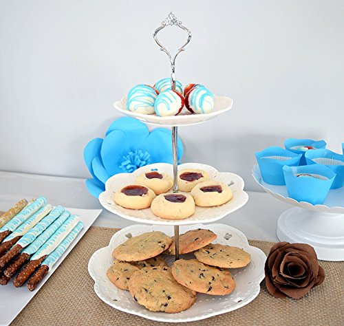 TIMELESS PARTY DECOR - Whether you are hosting a tea party for two, throwing a birthday bash or putting a wedding dessert table together, this versatile stand will allow you reuse it over and over again. Each tier is delicately carved with sleek wavy edges and embossed with flower patterns. It looks elegant and goes well with any decor or table setting.