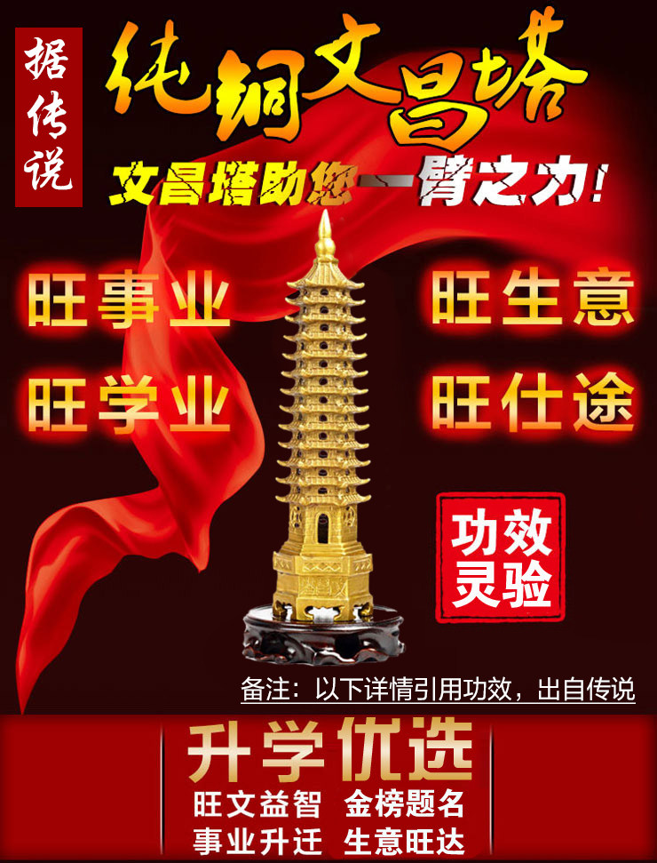 文昌,原意属星官名。即常说的"文曲星"或"文星",也有称" 文昌帝君"的。主读书功名事业等。所以,"文星"是深受文人崇拜。古人非常重视文昌,在许多城市都设有文昌塔。一般文昌塔,有七层的,有九层的,有十三层的,层数越多,高度越高,效果越好。