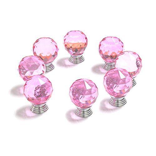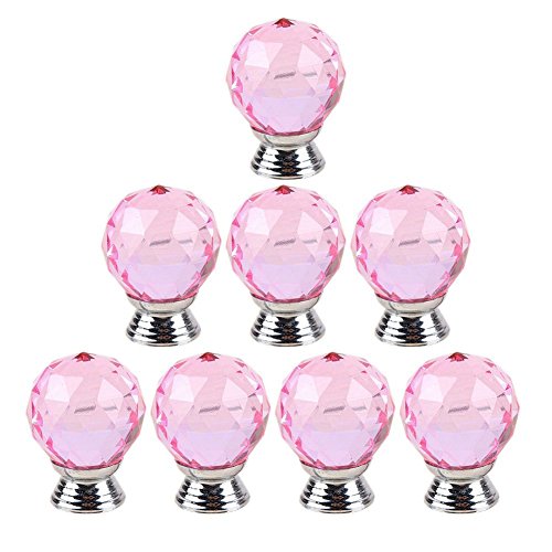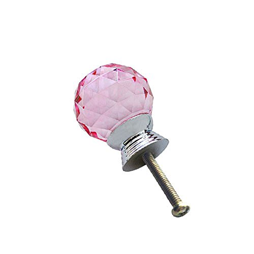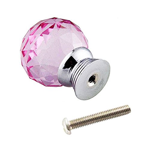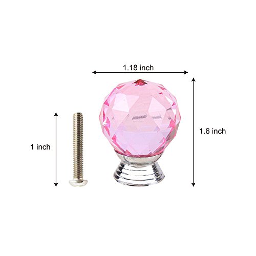 Crystal Diameter: Approx 30mm; Height: Approx 30mm.Shape: Round Shape. Made of high clear crystal glass and zinc-alloy. Finish By Shiny Polished Chrome. Great reflection of various kinds of brilliant colors when they catch the light. Crystal glass , with a nice weight and high hardness on it which makes it strong. With scrub polishing process, the diamond shape have perfect texture that ensures comfortable and wonderful touch. Comes with Free Screws. Easy to set-up and install with regular Screwdriver,you could assemble it within 5 minutes. Color Choice: pink, purple, blue, black, yellow, clear, red, green, azure. Widely Used in a variety of Furnitures, such as cabinet, bin, bookcase, doors, dressers, drawers, wardrobe, kitchen, cupboard and more.