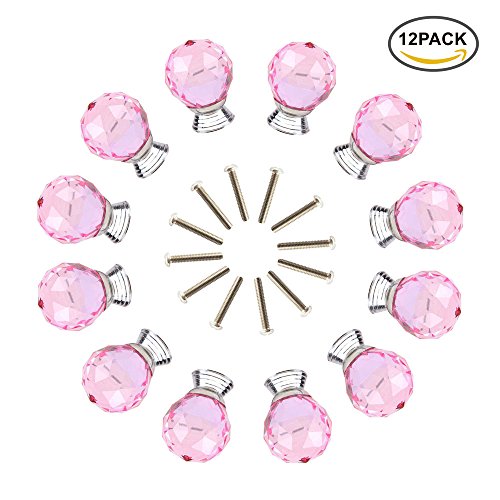 12 * Pink Color Round Shape Crystal Knobs 12 * Screws