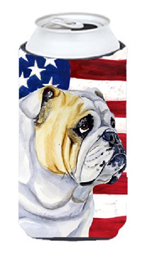 USA American Flag with English Bulldog Tall Boy Beverage Insulator Beverage Insulator Hugger