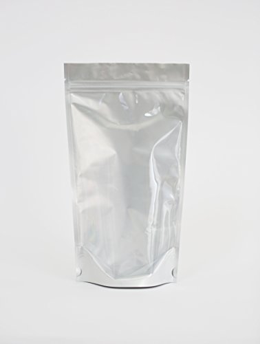 Silver/Clear Mylar Stand Up Bags Pouches with Zipper 6.5 X 11.5 X 3.5 inches (16 Oz) 100ct