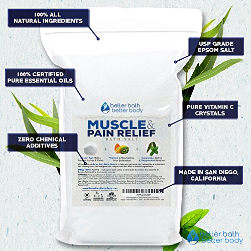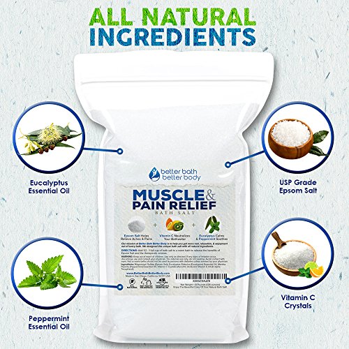 -. Title : Muscle & Pain Relief Bath Soak Epsom Salt With Eucalyptus & Peppermint Essential Oils & Vitamin C - 100% Natural No Perfume & Dyes - Relieve Aches & Joint Pains