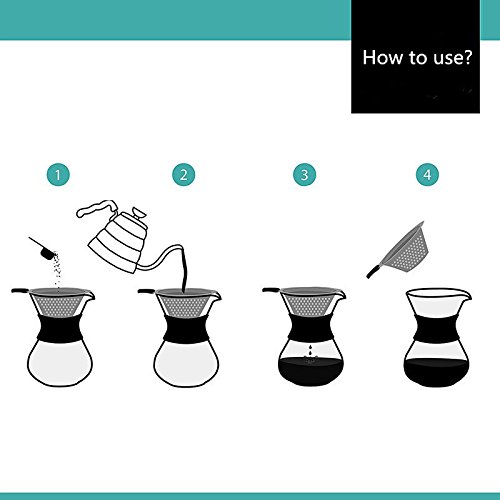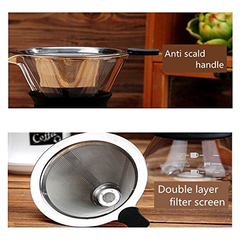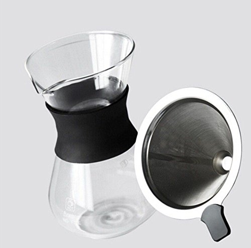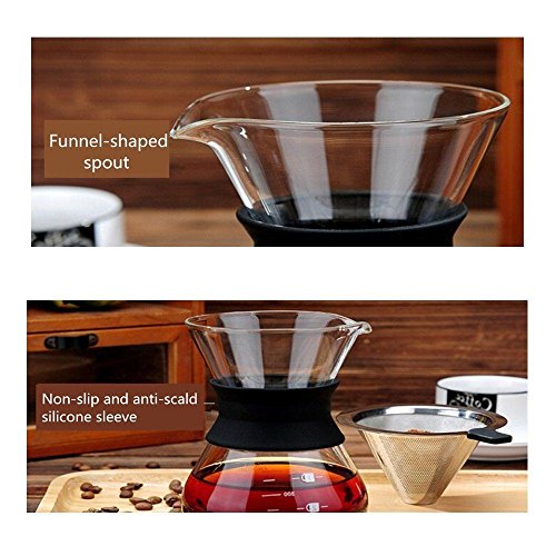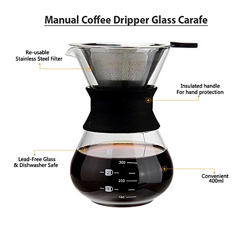 Pour Over Coffee Maker with Glass Carafe and Reusable Stainless Steel Permanent Filter - Manual Coffee Dripper Brewer with Real Sleeve -400ML13.5oz