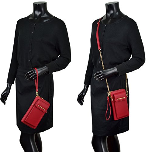 Product Description Dasein Fashion Messenger Crossbody Bag Chain Wallet with Velcro Snap Phone Case This all-in-one crossbody wallet comes with a phone case that fits most of the nowadays trendy tech phones, with a detachable chain shoulder strap. You can carry your cell phone, keys, credit cards, ID, cash, coins and other essentials in this fashionable messenger crossbody wallet. Why Buy from Fashlets? * Cut out the middle-man and can offer you near wholesale-level prices. * Can solve all order related problems in the shortest time with U.S. local customer service. * Every single item is shipped directly from Amazon Warehouse or Los Angeles. * Our warehouse business requires us to be one of the first to roll out the latest trends in the fashion world. * We offer free standard shipping in the 48 contiguous United States About Dasein 'Dasein' is a German word from existentialist philosophy meaning, roughly, 'the being' or 'being there.' When we created Dasein, we wanted our bags to spotlight the person behind the fashion accessory, rather than the brand itself. We believe in creating fashion that matches individual expression, rather than a means to sell expensive designer logos. With everything affordably priced, we make the latest handbag styles of the season accessible to every budget fashionista. So go ahead and pick up that gorgeous looking bag you've always wanted, at an unbelievably bargain price. *NOTE*: Due to differences between monitor displays, actual color may vary slightly from image. Little leather smell is normal. Putting it in well-ventilated areas for few days, the smell will disappear.