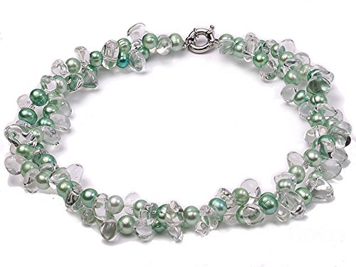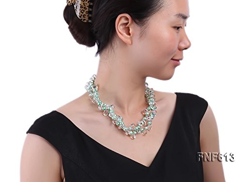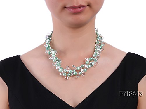 Description *This is a beautiful two-strand necklace set with 6x7mm light-green flat side-drilled cultured freshwater pearls and 8x14mm white baroque side-drilled crystal.