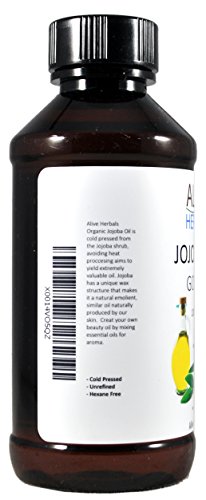 -. Title : Alive Herbals Organic 100% Pure Cold Pressed Unrefined Golden Jojoba Oil Therapeutic Grade Liquid Carrier Oil For Aromatherapy Relaxing Massage and Diluting Essential Oils