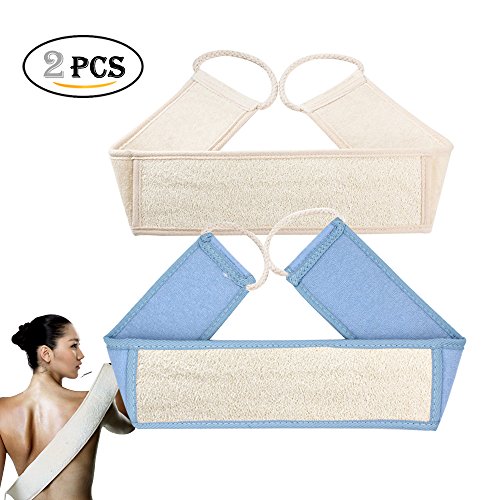Exfoliating Loofah Back Scrubber, Natural Luffa Shower Strap for Men and Women, Bath Body Brush, Remove Dead Skin, Massage(2 pack)