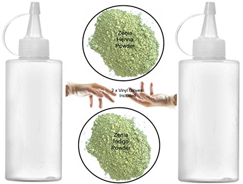 -. Feature : Zenia Indigo Henna Hair Dye Kit Includes Pair of Vinyl Gloves + 2 Applicattor Bottles For Natural Herbal Color Colour