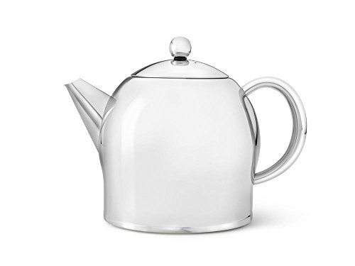 bredemeijer Santhee Double Walled Teapot, 1.4-Liter Stainless Steel Glossy Finish with Glossy Accents
