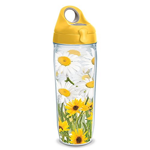 Tervis 1231168 White Daisies Wrap Water Bottle with Yellow WB Lid, 24 oz, Clear