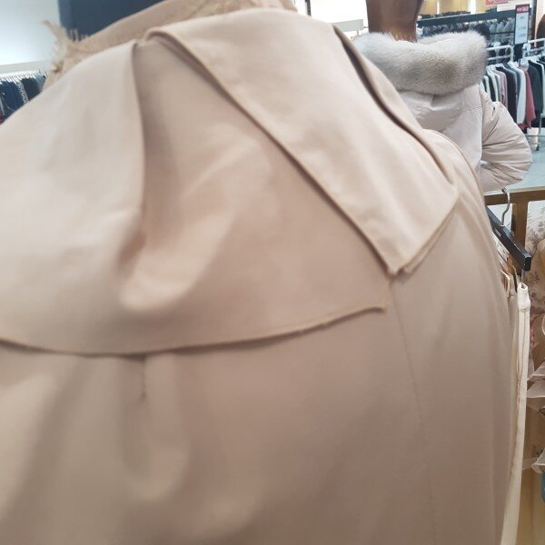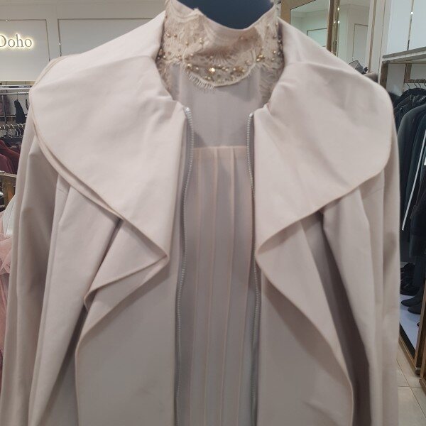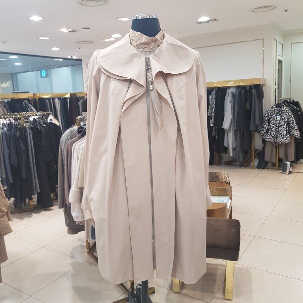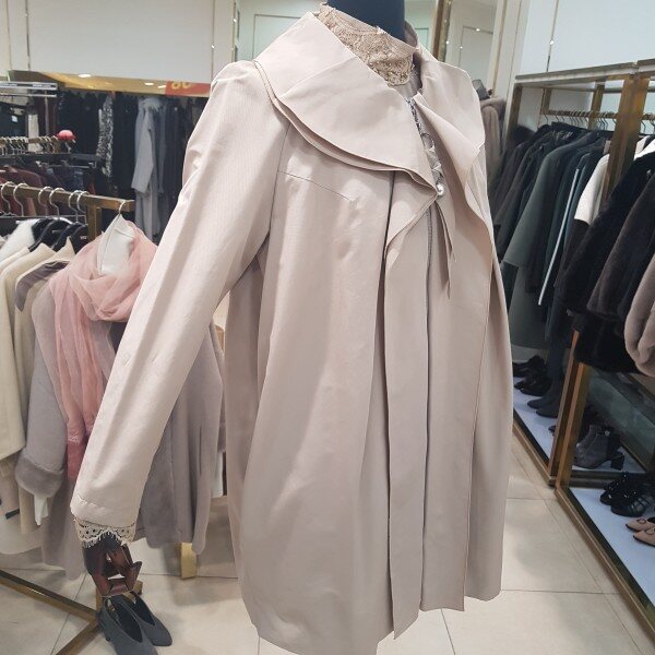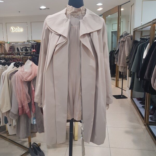 프릴로 카라선을 길게 연출한 바바리 디자인입니다.