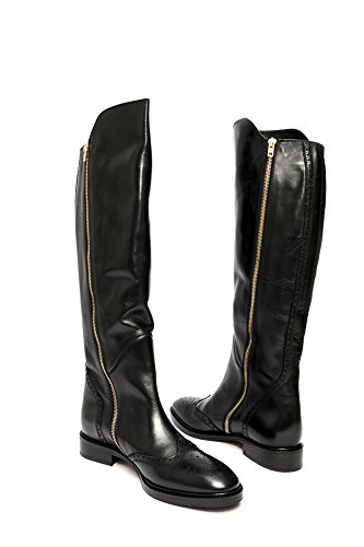 Product Description Le Pepe A149830 vitello nero. This is a womens above-the-knee black leather boot with decorative wing tip design/stitching. You can dress them up or dress them down. Anything goes!!! 0