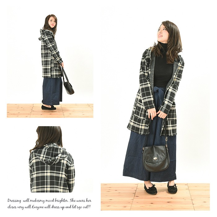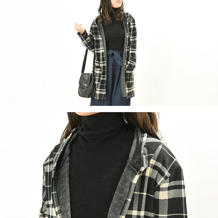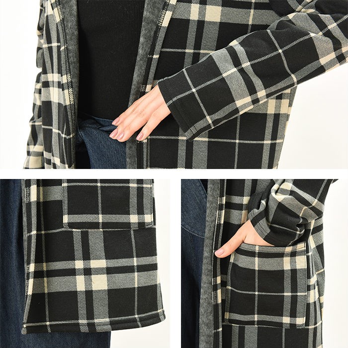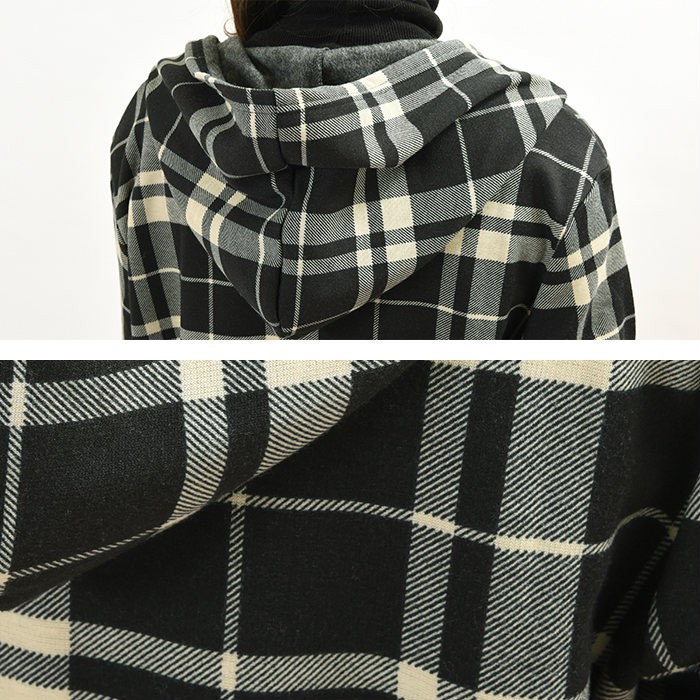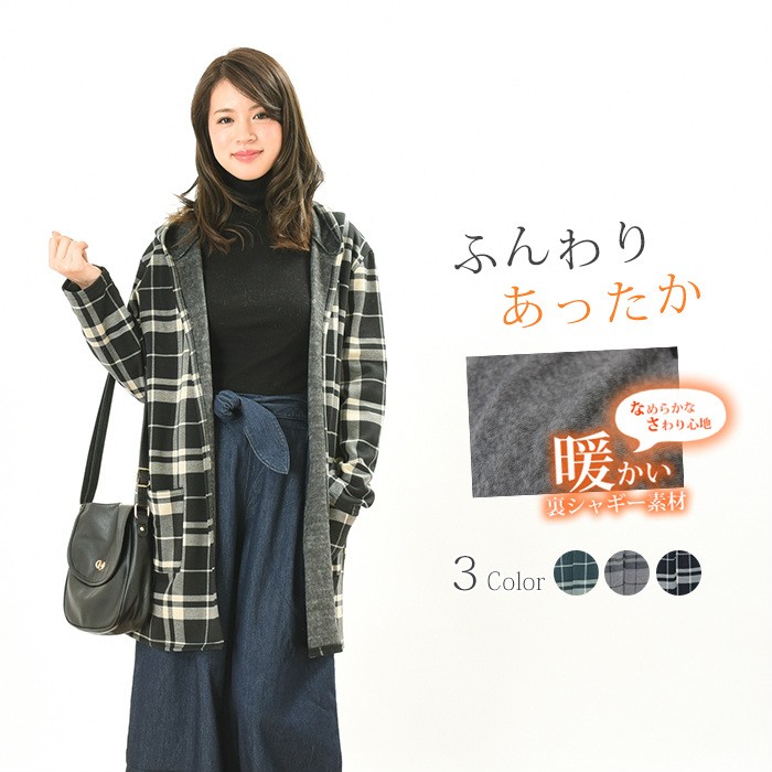 表面はふんわりとした触り心地、内側はシャギー素材でふんわりあったかい、これからの時期にピッタリのコーディガンです。大きめなチェック柄でオシャレな雰囲気がありこなれ感たっぷりなので、コーディネートのワンポイントにピッタリです♪フード付きでカジュアルな雰囲気もあるので、幅広いコーディネートに合わせやすいです。全体的にゆったりとしたシルエットなので、着心地楽ちんで幅広い年齢層の方に大人気です。Mサイズ Lサイズ