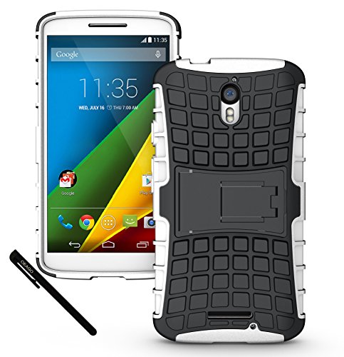 Moto Droid Turbo 2 Case Cover Accessories, OEAGO Motorola Moto X Force Case - Tough Rugged Dual Layer Protective Case with Kickstand For Moto Droid Turbo 2 / Moto X Force (2015 Release) - White. Custom made heavy duty protection case covers your phone and protect your phone against bumps and scratches. Easy fit and convenient snap-on installation. Designed For Motorola Moto Droid Turbo 2 (2015 Release), case fits both models. Package Included ONE Motorola Moto Droid Turbo 2 (2015 Release) cell phone cover case, a OEAGO stylus pen (color random). Please verify your cellphone model, carrier and brand before purchase.
