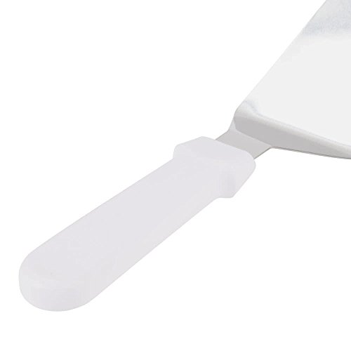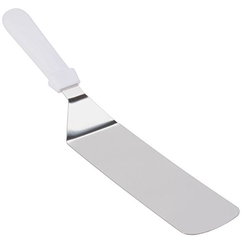 Heavy-Duty Stainless Steel Spatulas with Securely riveted smooth Plastic handles. Both spatulas have an 8 1/2 inch by 3 inch durable rounded flexible blade.