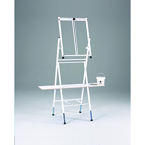 -. Binding : Office Product -. Brand : Bob Ross Easel -. Color : Silver -. EAN : 0759455276743 -. Feature : The Bob Ross 2-in-1 TV easel As seen on the popular TV series, The Joy of Painting / Folds for ease of storage Removeable easel for table-top use / White steel and plastic construction / Brush bucket shown not included / Measures 71 inches high x 47 inches wide x 25 inches deep -. Label : Bob Ross Easel -. Manufacturer : Bob Ross Easel -. MPN : 92-BR1000 -. PackageQuantity : 1 -. PartNumber : 92-BR1000 -. ProductGroup : Art and Craft Supply -. ProductTypeName : ART_SUPPLIES -. Publisher : Bob Ross Easel -. Size : 71 inhigh x 47 in wide x 25 in deep -. Studio : Bob Ross Easel -. Title : Bob Ross 2-in-1 Studio/ Table Top Metal Easel with Utility Shelf -. UPC : 759455276743