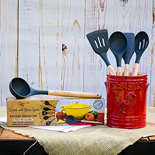 -. Feature : FLEXIBLE VERSATILITY: Hearth and Home Goods kitchen tool sets are lightweight and ergonomically designed to be used for cooking, baking, scraping bowls and creating every deliciously healthy recipe you can imagine. / STYLISH, KITCHEN-FRIENDLY DESIGN: Kitchens come in diverse colors and styles, which is why our kitchen utensils are designed to match your home's countertops and cookware perfectly. Made with beech wood handles and dark gray silicone heads, they're as functional as they are fashionable. / PREMIUM HEAT RESISTANCE: These non-stick, heat-resistant cooking tools can be used up to 480°F, making them safe to mix, cook and stir with your ceramic cookware, stainless steel bakeware and even your Teflon pot and pans. / REINFORCED DURABILITY: Each of our kitchen tools features a food-grade safe silicone head reinforced with nylon for strength and durability. Handwashing is always recommended to extend the life of your utensils. / SATISFACTION GUARANTEED: We design kitchen tools for the modern family. From durability to reliability, we care about each and every customer. As such, that's why we offer a 30-day money back guarantee for satisfaction.