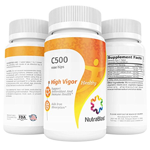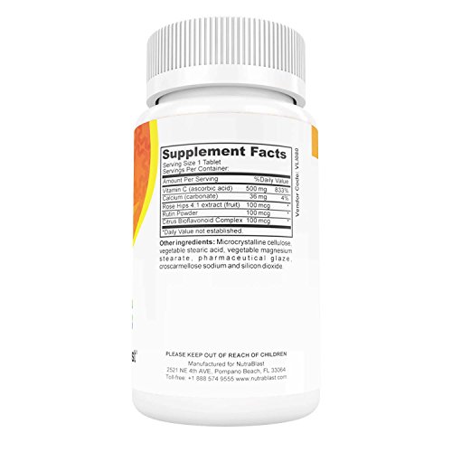 -. Title : NutraBlast Vitamin C 500Mg with Rose Hips, Rustin Powder, and Citrus Bioflavonoid Complex - Supports Immune System, Eye, Skin, and Hair Health - Made in USA (50 Coated Tablets)