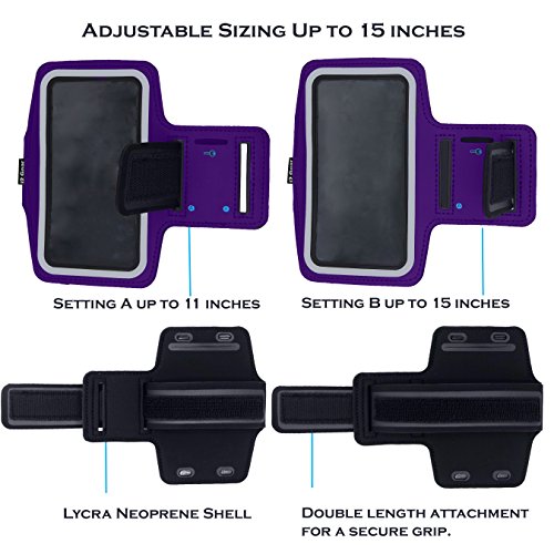 SAMSUNG GALAXY S6/S6 EDGE ARMBAND. The ideal armband for quick access to your phone and for listening to music while on the go. COMPATIBILITY - Use your armband with the Galaxy S6 / S6 Edge and S8 phones. There is even a slot for your house key which we all know can be a lifesaver. This armband is also great for high intensity workouts, yoga or even casual walking or outdoor activities. PROTECTION - The touchscreen is fully accessible through the plastic cover. The armband pouch and cover keeps your phone safe from impact. SIZE - This armband is lightweight and fits arm sizes from 9 to 15 inches. Also we recommend that you use this armband without a case. For those of us blessed with larger arms please see our armband extender which is sold separately. CARE - This armband can be safely hand washed and air dried after use.Feature
