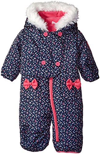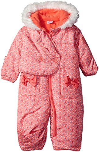 Floral double breasted puffer pram has polar fleece lining and is polyester filled