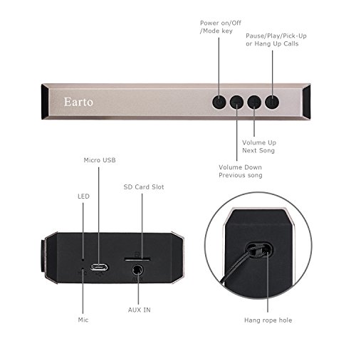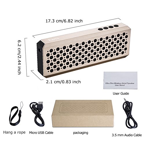 -. Title : Bluetooth Speakers,Earto Ultra Slim Premium Stereo Metallic Texture Portable Wireless Bluetooth Speaker with Mic & Hang Rope for iPhone,iPad,iPod,Android Phones and Tablet PC(Gold)