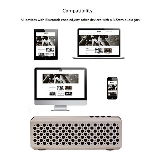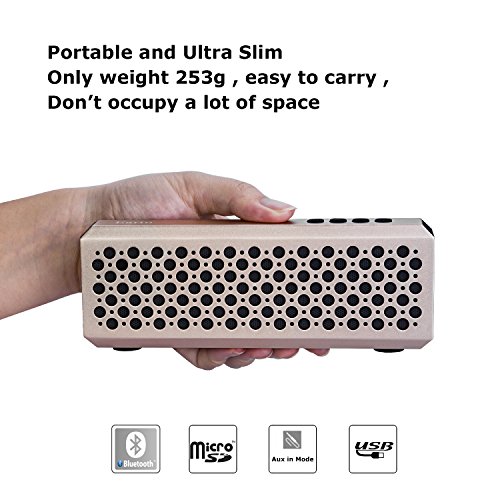 -. Feature : METALLIC TEXTURE DESIGN : Metallic texture design make the Bluetooth Speaker more fashion and elegant.When you carry it, you will be eye-catching. / ULTRA SLIM & PORTABLE: This Bluetooth Speaker only 2.1 cm and only weight 253 g. It's the best choice when you are traveling, having a panic or just putting it in your bag.Don't worry about it will account for a large space. / HIGH QUALITY STEREO SOUND : A little body hiding huge energy, Though it looks small, but this speaker's sound system is powerful, 6W Sound Speakers, immerse yourself in an emotional sound experience. / HAND FREE CALL: Built in microphone for speaker functionality with controls for media and phone calls.Support hands free calling. / GREAT COMPATIBILITY : Support most Bluetooth devices,including iPhone, Android Smart Phone, iPad ,Tablet etc. Also include Aux Cable to connect Laptop and PC.
