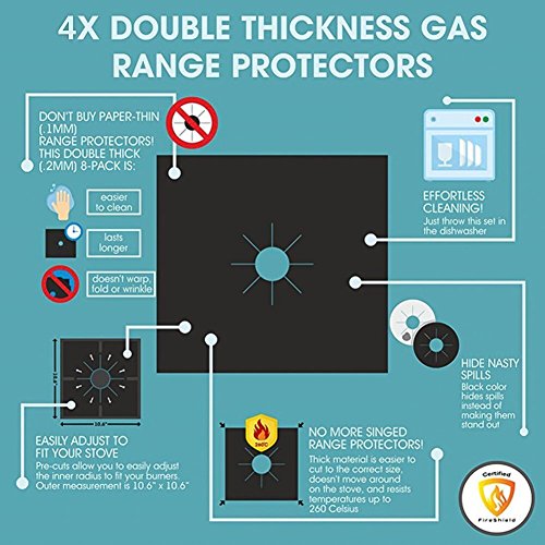 - REUSABLE: These stovetop liners are washable, reusable and reversible. The nonstick coating makes cleaning a breeze.