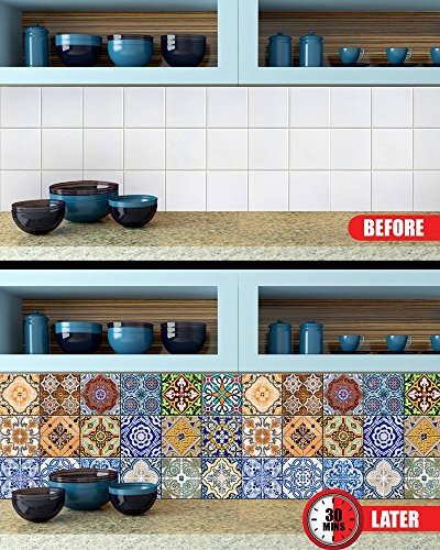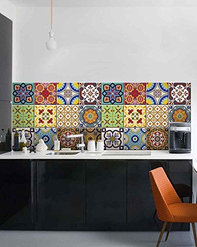 Tile Stickers 24 PC Set Traditional Talavera Tiles Stickers Bathroom & Kitchen Tile Decals Easy to Apply Just Peel & Stick Home Decor 6x6 Inch (Kitchen Tiles Stickers C1)