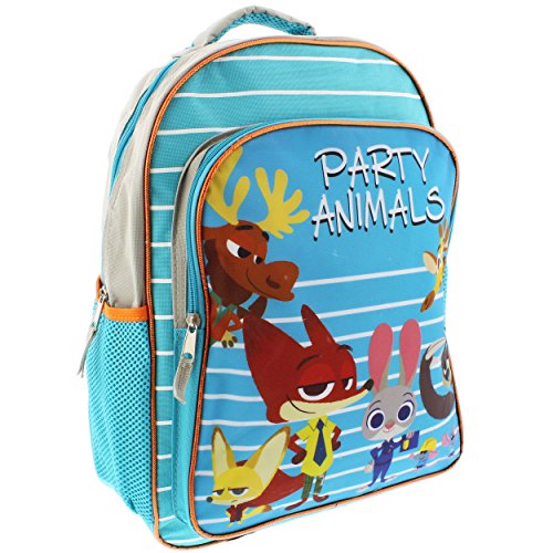 Your little party animal will love this cute Disney backpack! This backpack can easily carry books, gym clothes, pencils, and more! It features a roomy main compartment, a padded holding handle, and a front zip-up pocket for smaller supplies. The sides feature mesh pockets that are great for storing a calculator, note cards, or even a water bottle. Designed in durable Cordura fabric, this backpack features some of your favorite Zootopia characters, Judy Hopps, Nick Wilde, Finnick, Flash and more! It's the perfect back to school choice for any fan of Disney's Zootopia!Feature