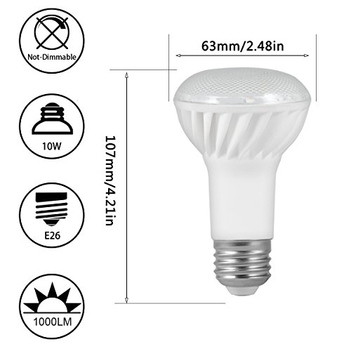 JandCase BR20 Flood Light Bulbs, 75W Incandescent Equivalent, 1000 Lumens, 10W, Natural Daylight White 4000K, Ceramic LED Light Bulbs, Medium Base E26, Not Dimmable, 6 Pack