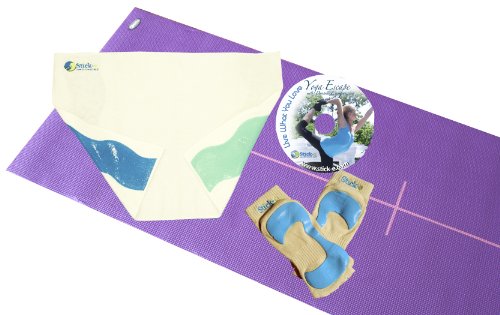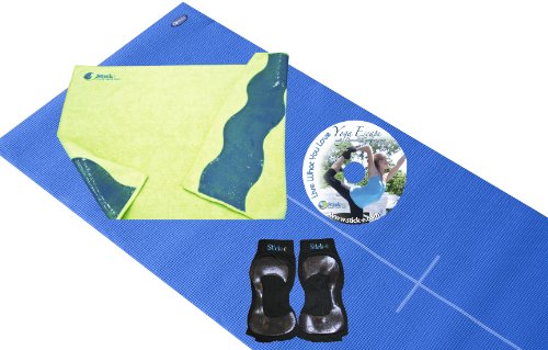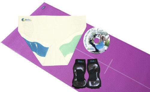 Binding : Sports Product Description The Yogi Starter bundle is the perfect combination of products for the Yogi who is just getting started. This package contains one pair of black Stick-e Socks, for that Barefoot Feeling., one blue Stick-e Yoga Towel, for a Clean grip, one Stick-e Body-Align Mat and the Live What You Love Yoga Escape DVD. This package has all of the elements needed to have a clean, effective and safe workout. It ensures a comfortable, non-slip, clean workout with Stick-e Socks and Towel. The Stick-e Yoga Towel, is multifunctional. It will protect face and hands from shared mats and equipment while absorbing sweat and staying in place. The Body-Align mat with it's center line will help the Yogi with proper body alignment. The Live What You Love Yoga Escape DVD is 60 minutes with 3 levels of yoga from beginner to advanced and also includes an additional fitness segment. 0