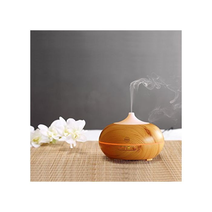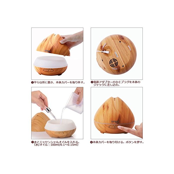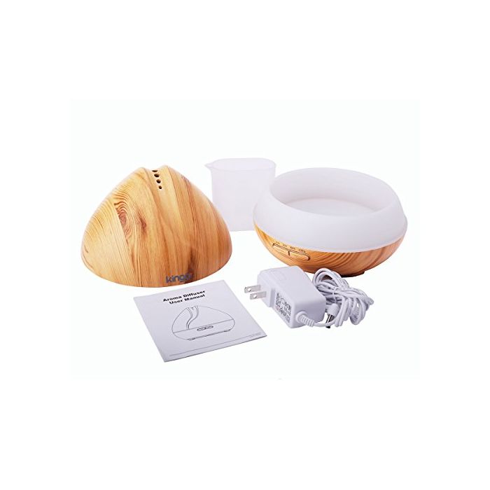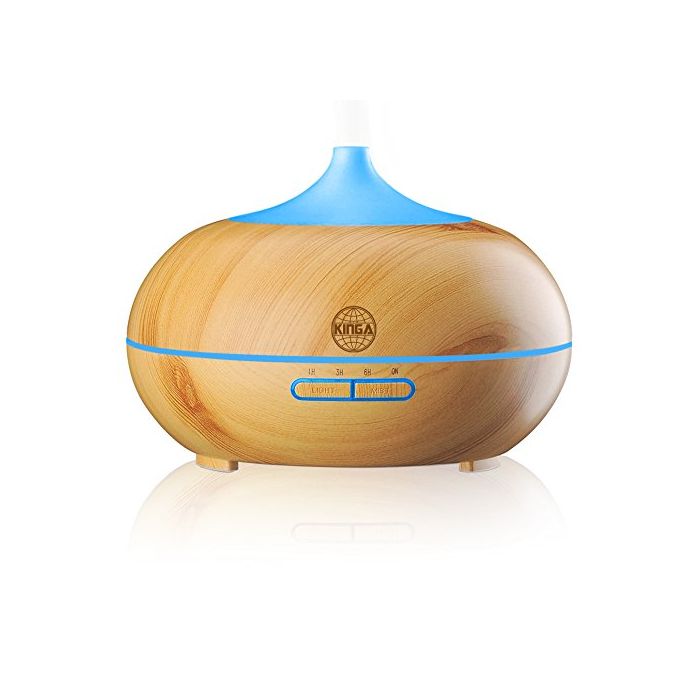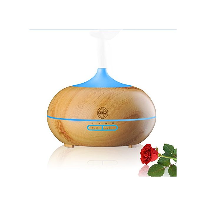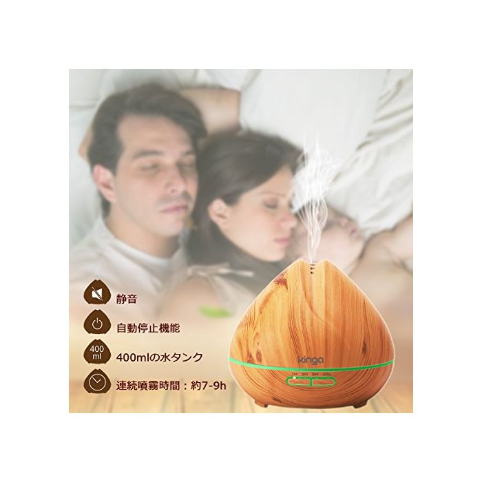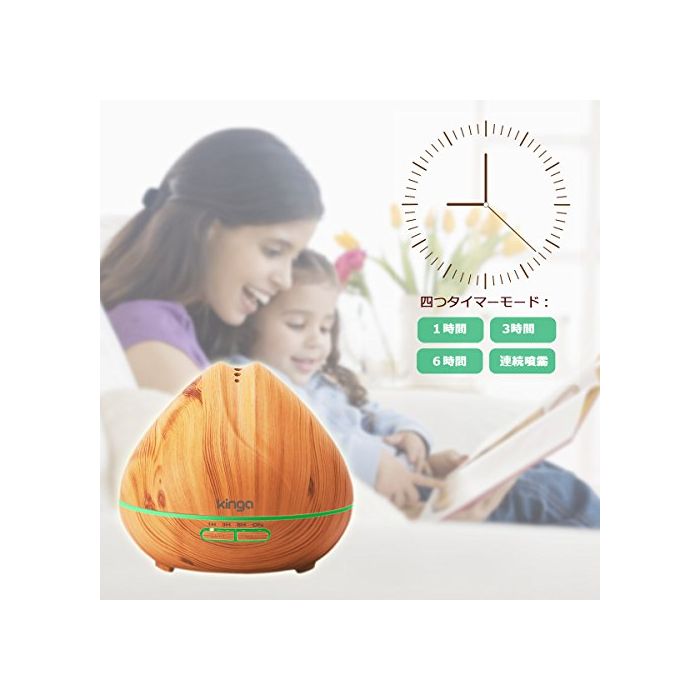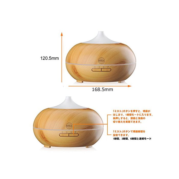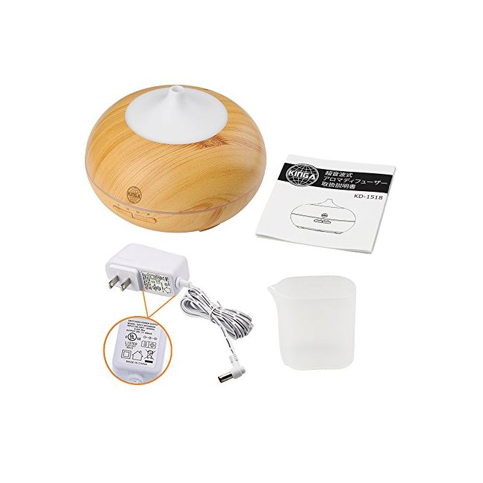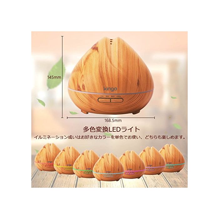 금《가》(KINGA)아로마 diffuser 초음파 가습기 공기 청정기 다색변환 LED라이트 부착 방향기 아로마 라이트 각 장소용 시간 설정 연속가습 (300ml 우드 그레인백 갈색