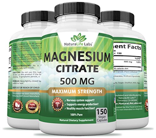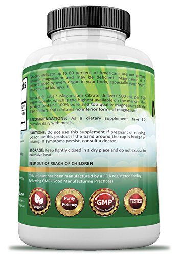 NaturaLife Labs Magnesium Citrate formula delivers maximum strength 500MG vegan capsules of 100% Pure Magnesium Citrate. Our vegan capsules dissolve quickly, contain no gelatin and are absorbed significantly better than tablets.† Magnesium supports:†