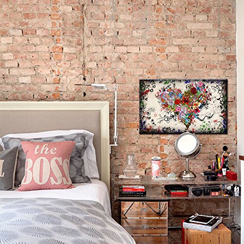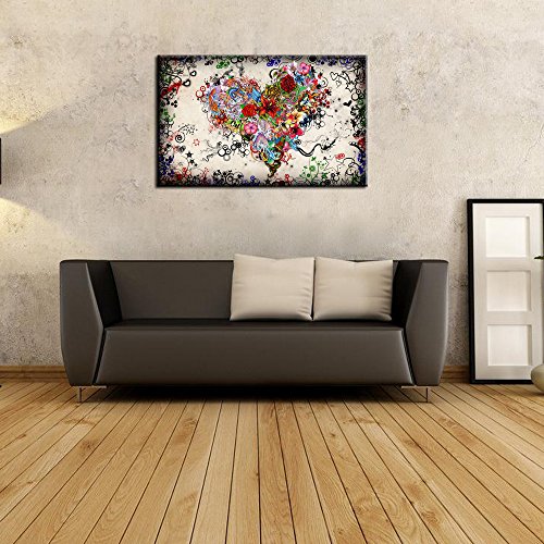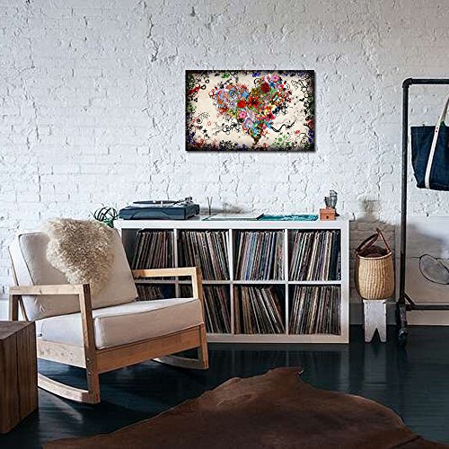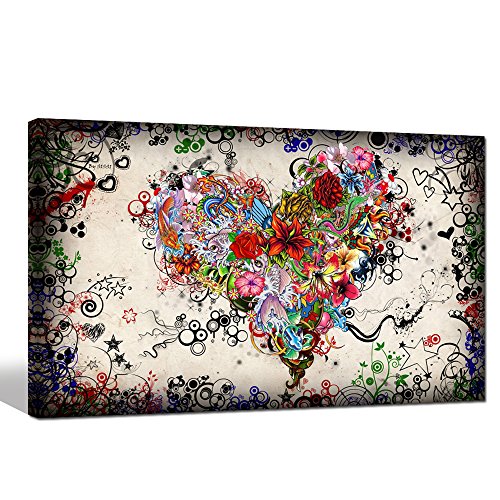 -. Title : Sea Charm - Contemporary Vintage Abstract Art for Living Room,home Decor Pictures,love Heart Modern Wall Art Gallery Wrapped,doodle Canvas Wall Art Framed and Ready to Hang