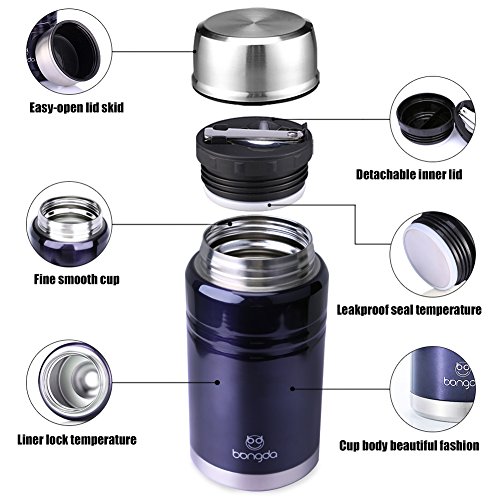 ✿Excellent Design: the stainless steel interior and exterior is durable and withstands the demands of daily use; The double wall design allows this food jar to stay cool to the touch with warm foods and sweat-proof with cold foods