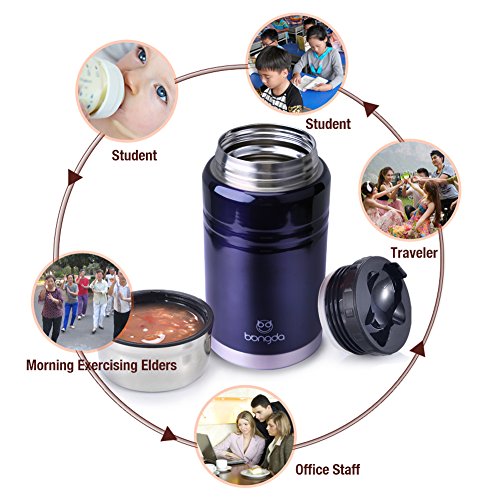 ✿Advanced Technology: Double wall stainless steel food jar features vacuum insulation;technology that keeps contents cold and warm up to 7 hours; Vacuum insulation maintains temperature of the contents longer, which inhibits bacteria growth and spoiling