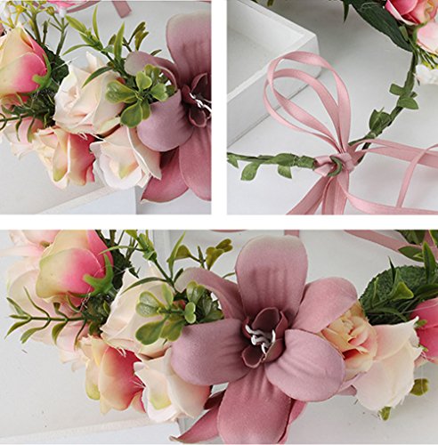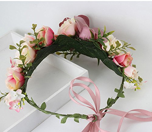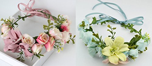 Vivivalue Handmade Boho Flower Headband Hair Wreath Halo Floral Garland Crown Headpiece with Ribbon Festival Wedding Party