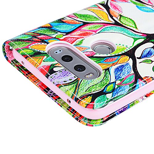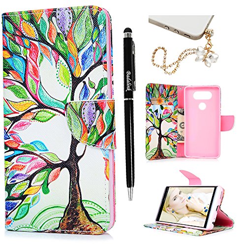 Badalink LG V20 Wallet Case (2016) Flip Folio Kicktand Case PU Leather Case Shockproof Soft TPU Flexible Inner Bumper Colorful Painting Slim-Fit Protective Card Slots Cover for LG V20 - Colorful Tree