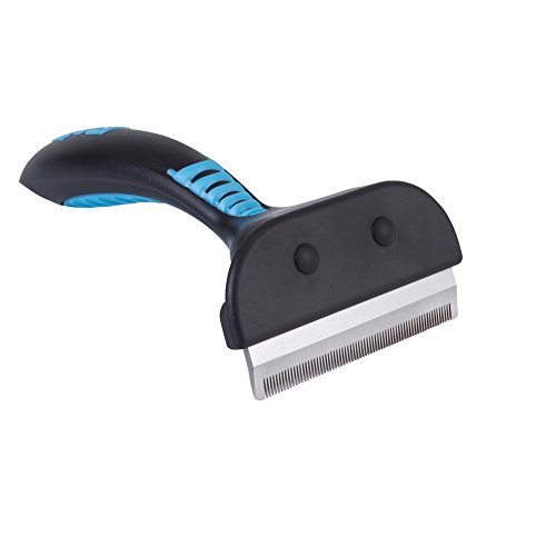 PROFESSIONAL QUALITY Made of high quality stainless steel, attaches to non-slip rubber of handle provides a good sense of gripping, increase the duration of the deshedding brush.