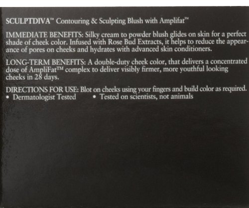 -. Binding : Misc. -. Brand : Fusion Beauty -. Feature : A silky cream to powder blush that glides on effortlessly for the most natural flush of color. / Infused with Rose Bud Extracts, it helps to reduce the appearance of pores on cheeks and hydrates with advanced skin conditioners. / This double-duty cheek color delivers a concentrated dose of AmpliFatTM for visibly firmer, more youthful looking cheeks in 28 days. / 0.30 OZ. / 8.5 G -. NumberOfItems : 1 -. PackageQuantity : 1 -. ProductGroup : Beauty -. ProductTypeName : BEAUTY -. Title : FusionBeauty Sculptdiva Contouring and Sculpting Blush with Amplifat