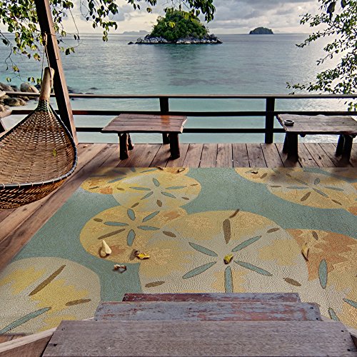 Homefires sanddollars by the sea 22-inch by 34-inch indoor outdoor hand hooked area rug. If you looking for something to cover that blank area on the floor in the living room. Or maybe the floor in the bedroom is looking a little cold and bare. Homefires area rugs are the perfect solution to all of your boring floor problems. This rug is stylish and is sure to bring that touch of warmth and comfort to any room. Design by cynthia mac collum. Made of polypropylene. Spot clean with low sudsing detergent or completely hose off.Feature