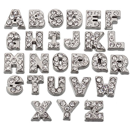 RUBYCA 52pcs Czech Crystal Floating Charms Alphabet A-Z Letters Lot for Glass Living Memory Locket Silver Color