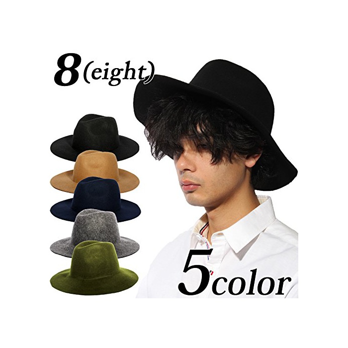 원본상품명: (エイト) 8(eight)5color つば フェルトハット 中折れ ウル ブラック