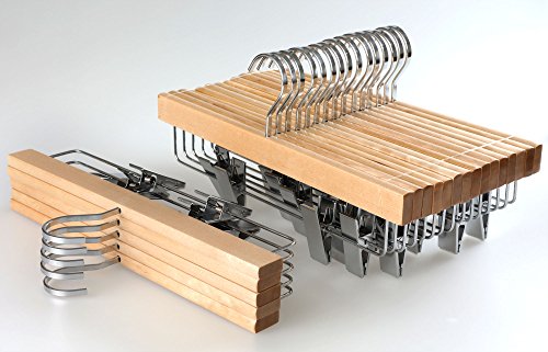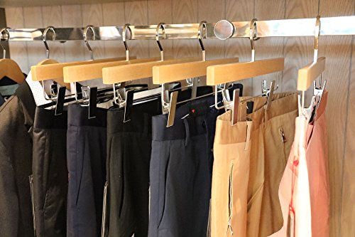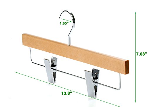 -. Title : Topia Hanger Wooden Pants Hanger,Wood Skirt Hanger,Glossy Finish with Extra Thick Chrome Hooks & Anti-Wrinkle Clips, 20-Pack